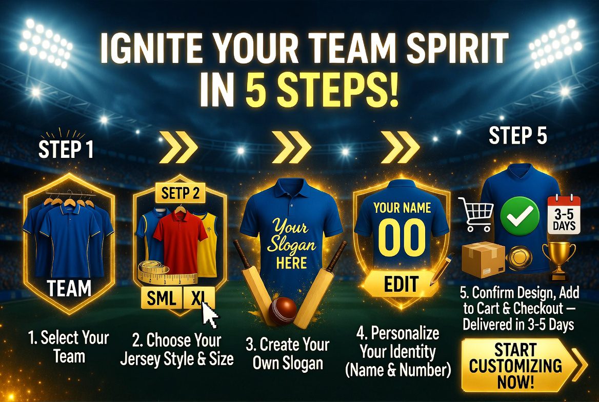 At Sporti5, we believe that every sports fan is the "12th Player" of their team. For years, fan merchandise was generic—you wore the same jersey as millions of others. We are changing the game by bringing sports and technology together. Sporti5 is a sports-tech startup dedicated to giving the power of design back to the fans. Our online platform allows you to move beyond standard merchandise. Whether you are cheering for the Chennai Super Kings in the electric atmosphere of Chepauk or supporting the Mumbai Indians from your living room, your loyalty deserves a personal touch. We provide high-quality, official-style IPL jerseys for all 10 teams, but with a twist: you define the identity. By adding your own name, a lucky number, and a personal slogan, you aren’t just wearing a team kit; you are wearing your passion.