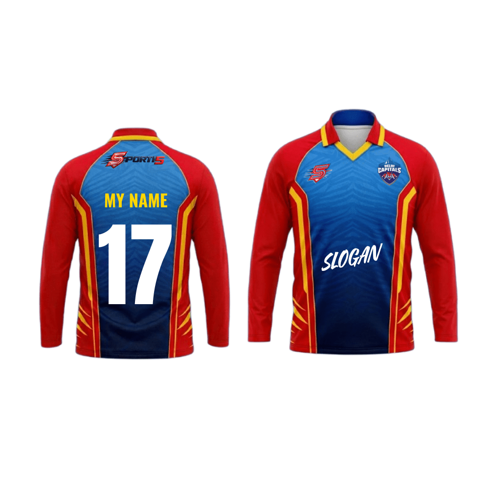 DC Fan Jersey |Collar With Full Sleeves | Custom Slogan, Name & Number | IPL Cricket T-Shirt | SPORTi5